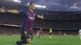Gol de Luis Suárez (3-1) en el Barcelona 5-1 Real Madrid El delantero uruguayo anotó el tercer tanto de su equipo después de rematar de cabeza un centro de Sergi Roberto desde la banda derecha.